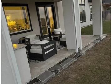 This specialized patio extention solution places shades outside of the patio slab, creating a custom alignment that ensures perfect shading coverage without compromising patio aesthetics. Options include: tile, stamped concrete, brick, etc.