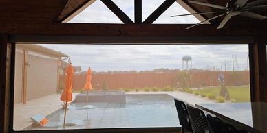 Motorized shades can be installed around poolside areas or cabanas to create shaded retreats that block UV rays and maintain privacy.